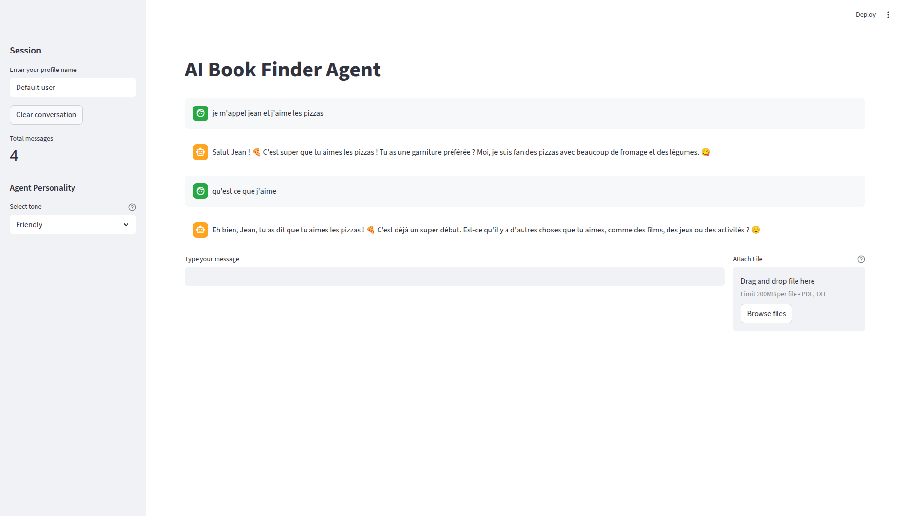 Un AI Book Finder Agent : un agent conversationnel qui recommande des livres en utilisant l’API Google Books, avec mémoire persistante via ChromaDB.